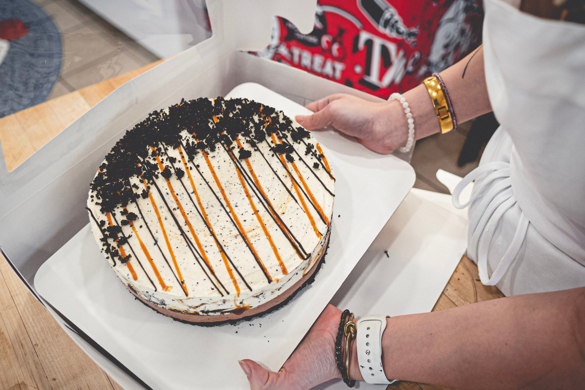 - Drizzle of Caramel, Cookie Crumble, and Chocolate Ganache